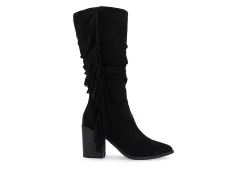 Journee Collection Womens Hartly Fringed Wide Calf Dress Boot – Black