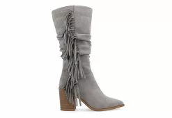 Journee Collection Womens Hartly Fringed Wide Calf Dress Boot – Grey