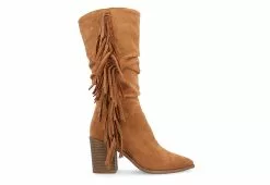 Journee Collection Womens Hartly Fringed Wide Calf Dress Boot – Tan