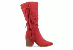 Journee Collection Womens Hartly Fringed Extra Wide Calf Dress Boot – Red