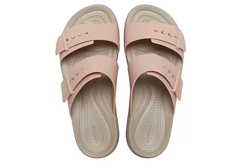Get fashionably comfortable in the Brooklyn Buckle women’s wedge sandal from Crocs. With a flexible Matlite upper featuring a two-strap design that’s easily adjustable for a great fit, these sandals also have a deep heel cup and raised insole for stabilized support. The LiteRide foam footbed offers innovative comfort, while the low wedge enables versatile styling.