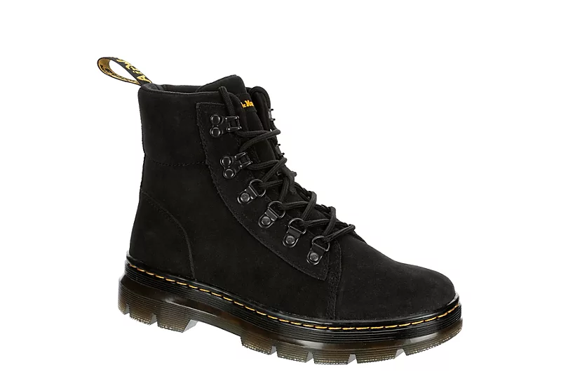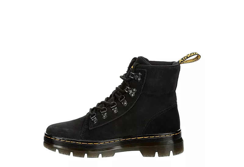 Create a stylish yet edgy look with the Combs Suede women’s combat boot from Dr. Martens. These boots feature a lightweight, water-resistant suede upper with lace-up closure for a secure fit and a padded collar & tongue for added comfort. The cushioned insole soothes your foot, while the durable lug outsole provides outstanding grip and traction, perfect for all-day wear.Â