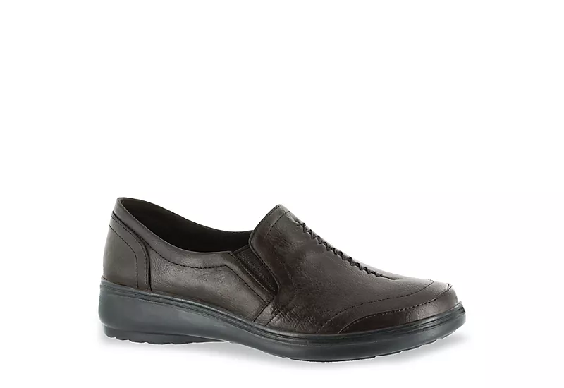Take a stroll amongst the clouds with the Easy Street Ultimate women’s slip-on sneaker. With a faux leather upper and dual elastic panels, this slip-on sneaker is both flexible and lightweight for all-day wear. The Comfort Wave technology and synthetic sole offer stable, cushioned support as you take care of business.