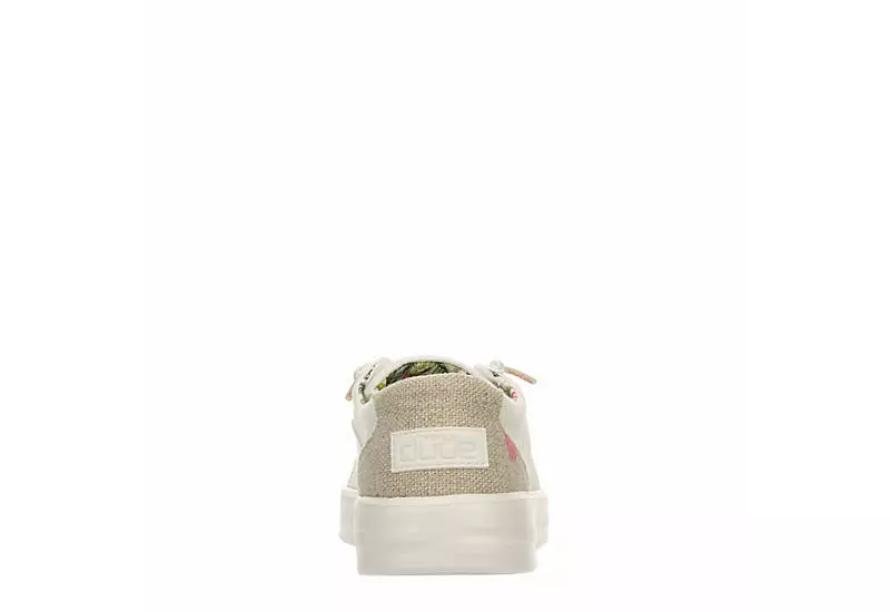 Find your uncommon style in the HEYDUDE Karina women’s slip-on sneaker. With a cotton canvas upper featuring lively prints for a custom feel, this sneaker is machine washable for easy maintenance. The removable Memory Foam footbed and leather lining offer ergonomic support, cushioning your steps while the ultralight outsole sets you free to explore unfettered.