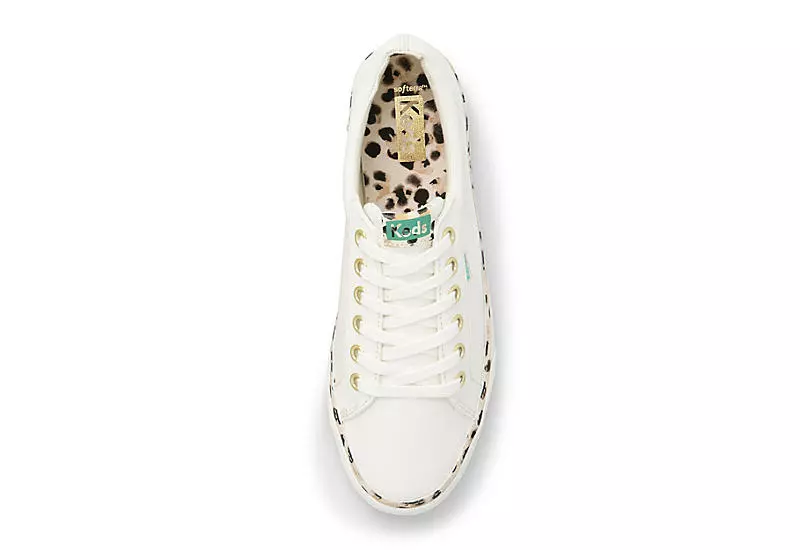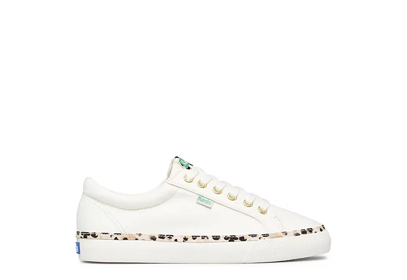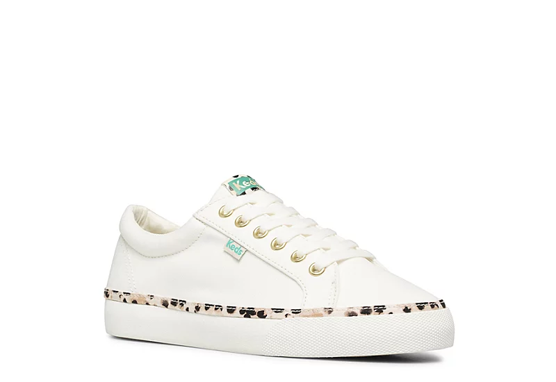 Create a modern sporty look with the Jump Kick women’s sneaker from Keds. With a canvas upper featuring a padded collar for comfort, this lace-up shoe also has stylish leopard print foxing. The footbed cushions every step while the flexible outsole is lightweight with bouncy traction.