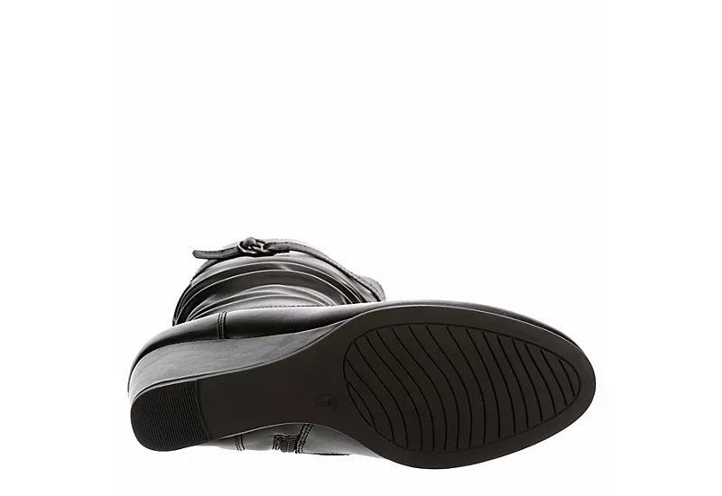 Add some fun to your fall boot game with the Lauren Blakwell Johanna women’s wedge boot. Featuring a faux leather upper with slouch detailing for extra style, this inside zip boot brings the oomph to your look. The lightly padded insole soothes your foot while the wedge heel offers stable lift to keep you moving.