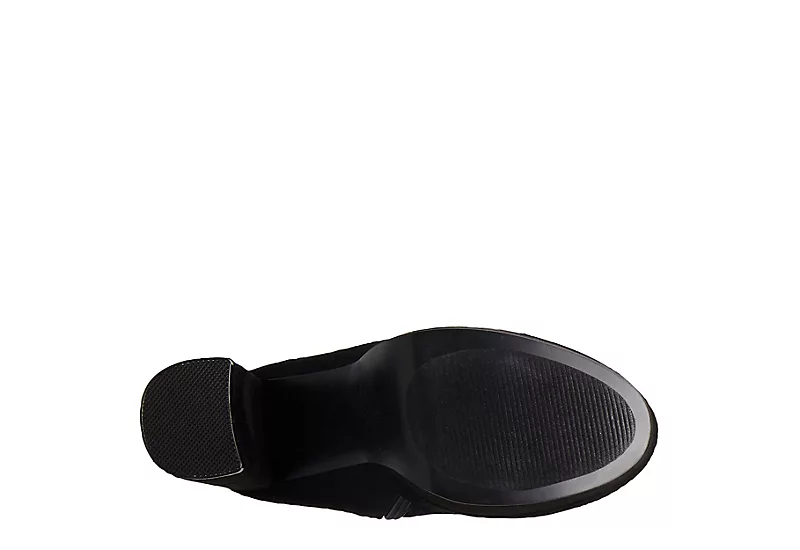 Rule in the Madden Girl Orin Over The Knee women’s boot. With a microfiber upper featuring a nice platform for extra height, this partial zip boot instantly adds edge to any outfit. The synthetic & jersey lining soothes while the 4 1/2″ heel lifts you into seriously fierce territory.