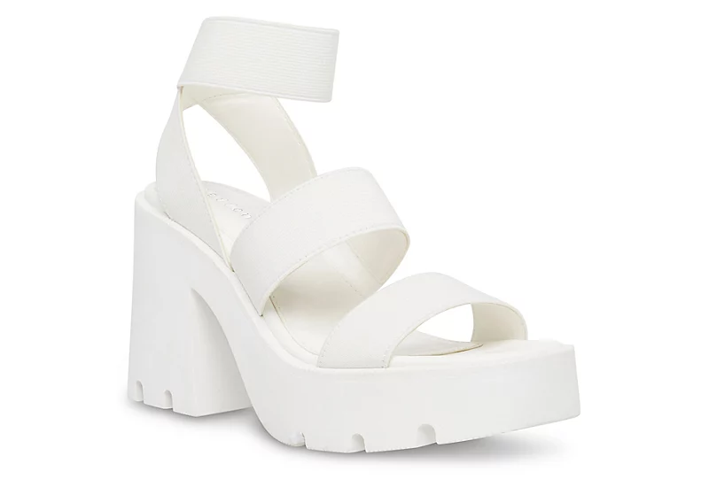 Set yourself above the noise in this madden girl Templee women’s platform sandal. With an elastic fabric upper featuring a stretchy ankle strap for a secure fit, this sandal is easy to wear regardless of the occasion. The padded footbed cushions your foot while the elevated platform and block heel with its lug outsole lend a modern look and enviable height.