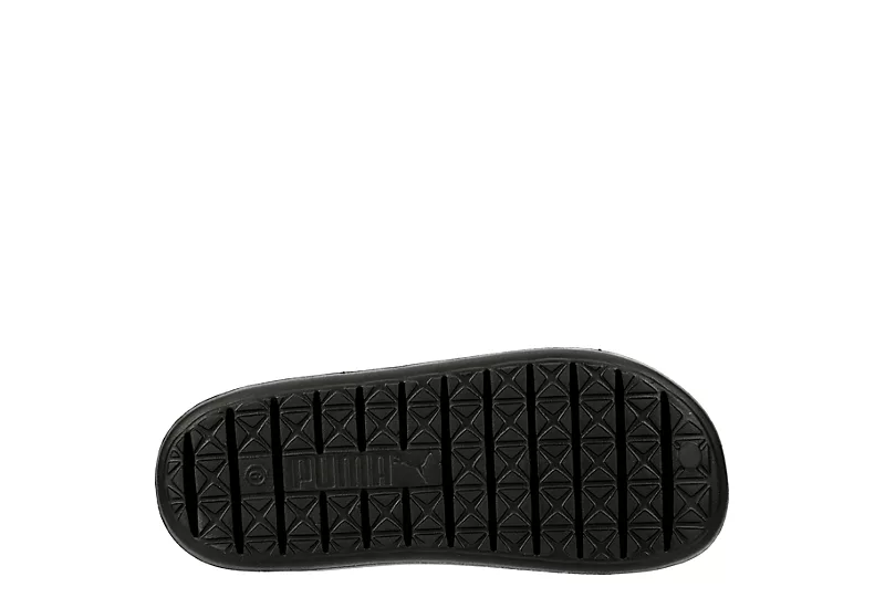 Enjoy trendy minimalist style with the PUMA Shibusa women’s sandal. Featuring a one-piece synthetic upper with embedded PUMA Wordmark and a side cutout, this breezy sandal is sure to become a fave. The cozy footbed cradles your foot while the textured outsole offers some traction.